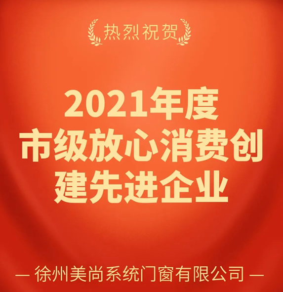 喜信丨门窗十大品牌美尚体系门窗无限公司荣获“2021年度市级安心花费建立进步前辈企业”